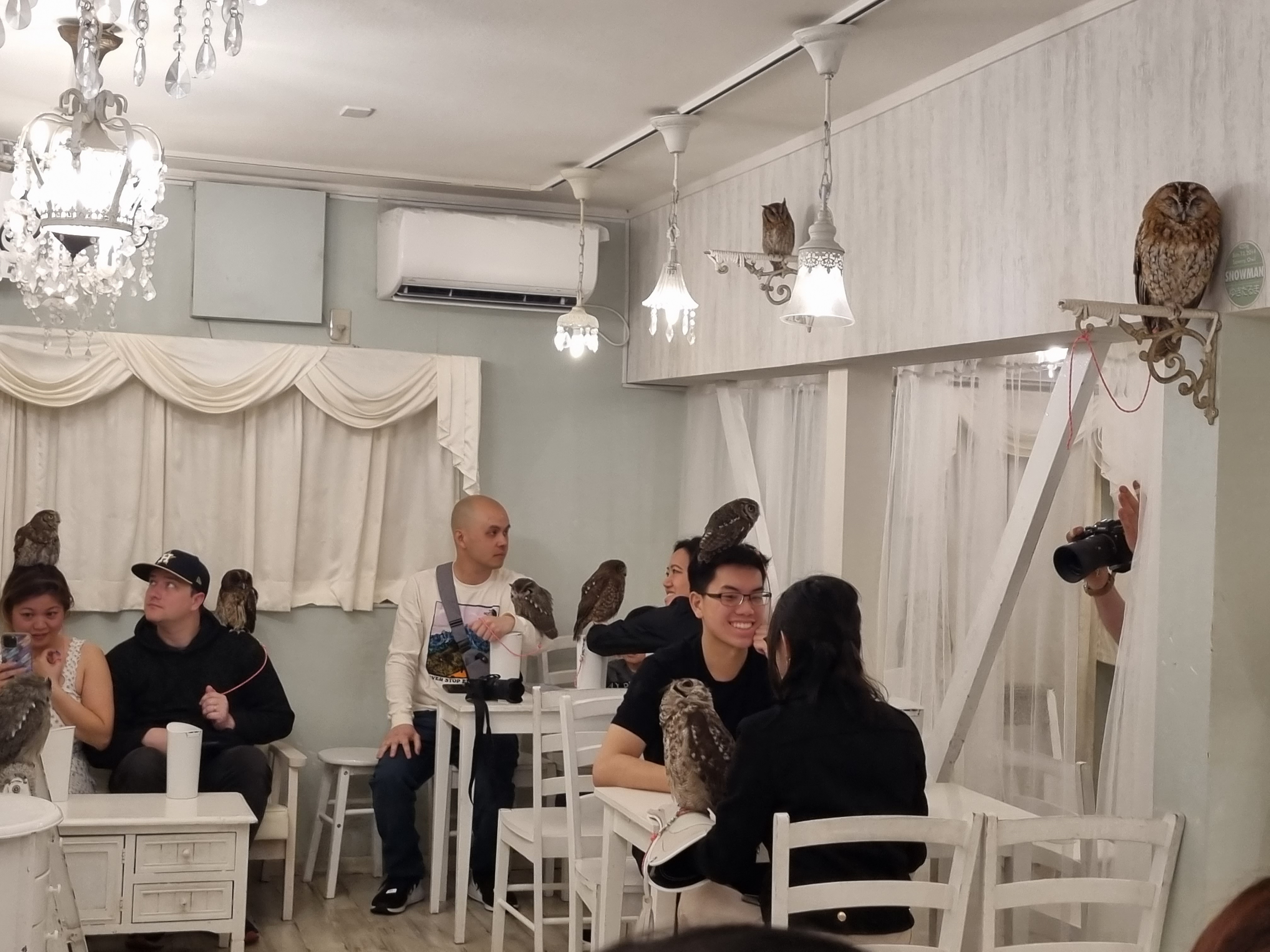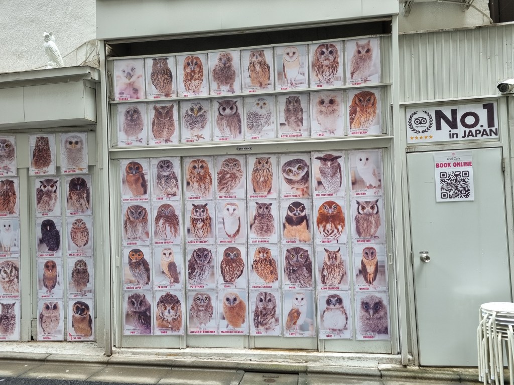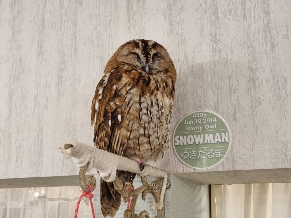 So we’ve been to shiba dog cafes, cat cafes and a zoo cafe featuring meerkats, capybaras, hedgehogs etc. Let’s try something different, shall we? It’s time to go to an … OWL CAFE! Hoot-hoot!